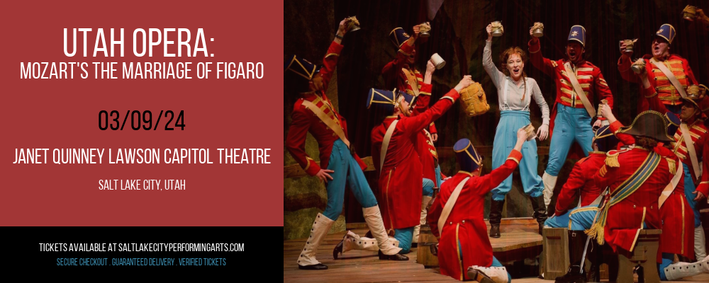 The elegant splendor and refined entertainment of the opera is coming to Janet Quinney Lawson Capitol Theatre in Salt Lake City, Utah on Saturday 9th March 2024 when Utah Opera: Mozart's The Marriage of Figaro takes the stage. This magnificent exhibition showcases some of the best performers in opera to date for a limited-run event that is sure to become unforgettable and timeless. Early reviews are even celebrating this performance, as it displays and features all the elements of rich operatic drama that you could want. You and your friends can enjoy a performance that combines the magnificent score with the mesmerizing story that has already been rated A+ by the toughest critics and the most demanding fans. In fact, some are even calling Utah Opera: Mozart's The Marriage of Figaro the most-anticipated operatic experience to come to Salt Lake City this spring. In fact, some fans are already predicting that Utah Opera: Mozart's The Marriage of Figaro will become the hottest opera experience to come to town in 2024! Tickets are selling out now, so don’t delay. Click the button below to buy tickets to see Utah Opera: Mozart's The Marriage of Figaro live at Janet Quinney Lawson Capitol Theatre in Salt Lake City, Utah. The Opera welcomes you on Saturday 9th March 2024!
